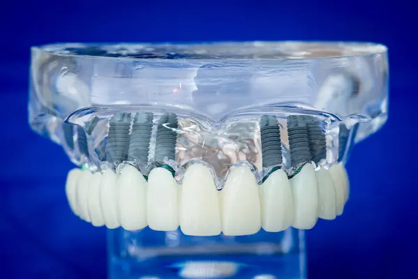 Fehlen im Ober- oder Unterkiefer alle Zähne, können wir mit Hilfe von Implantaten ganze künstliche Zahnreihen fest mit dem Kiefer verbinden. Diese Möglichkeit bietet nicht nur ästhetische, sondern insbesondere auch funktionelle Vorteile gegenüber der sonst üblichen herausnehmbaren Prothese.